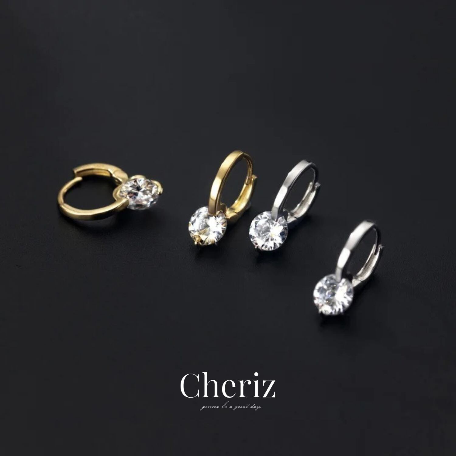 どんなスタイルにも合わせやすいベーシックなフープピアスに1粒のジルコニアをプラス。