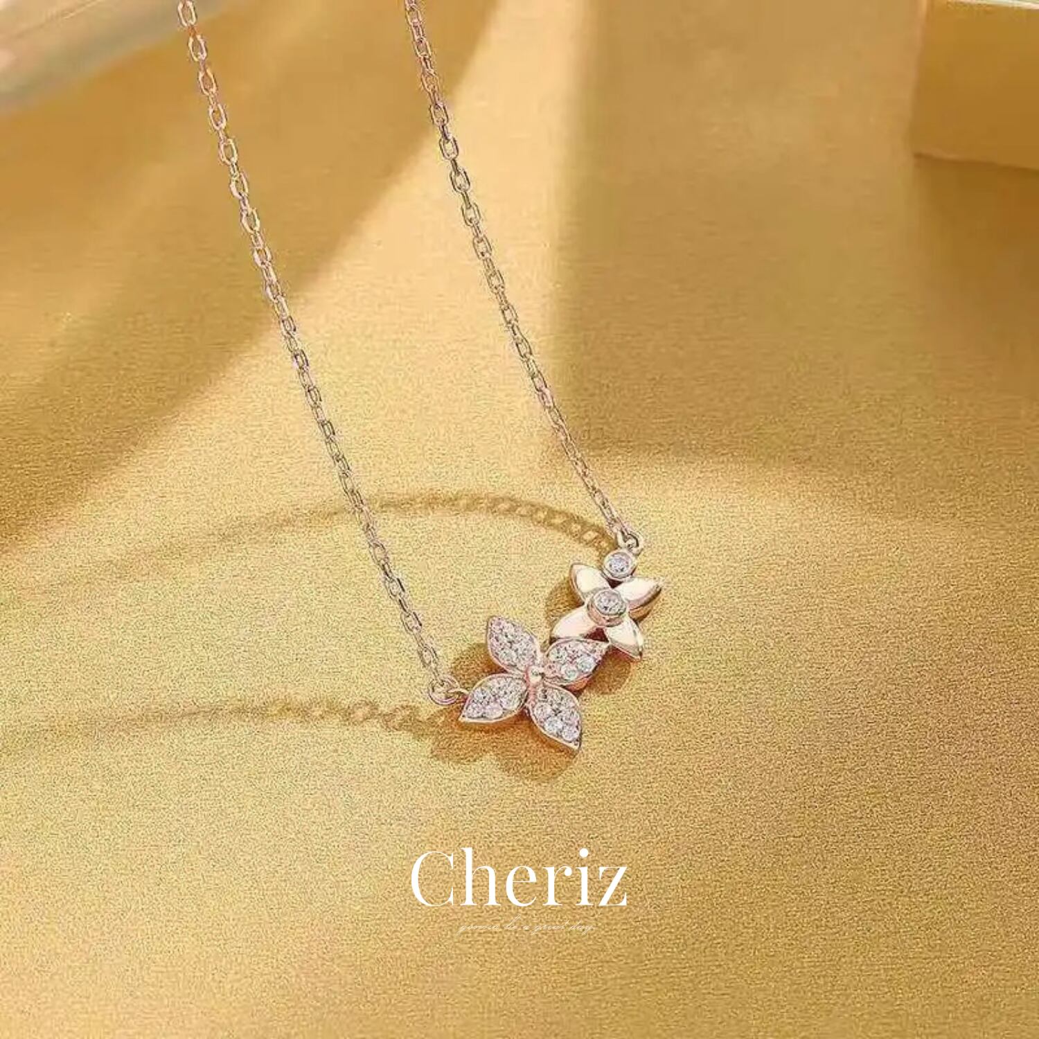 美しい輝きのジルコニアが上品なフラワーモチーフのネックレス。