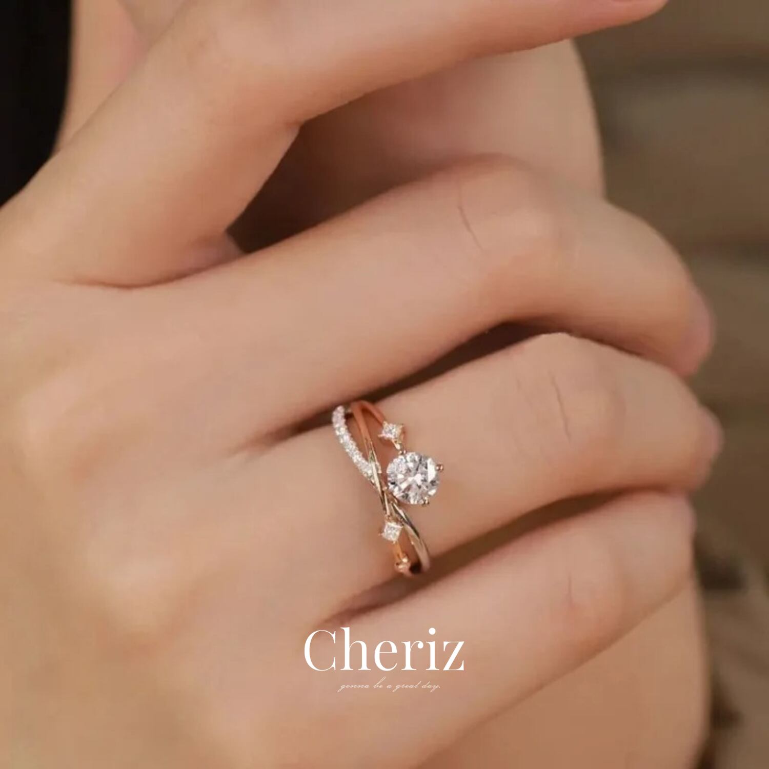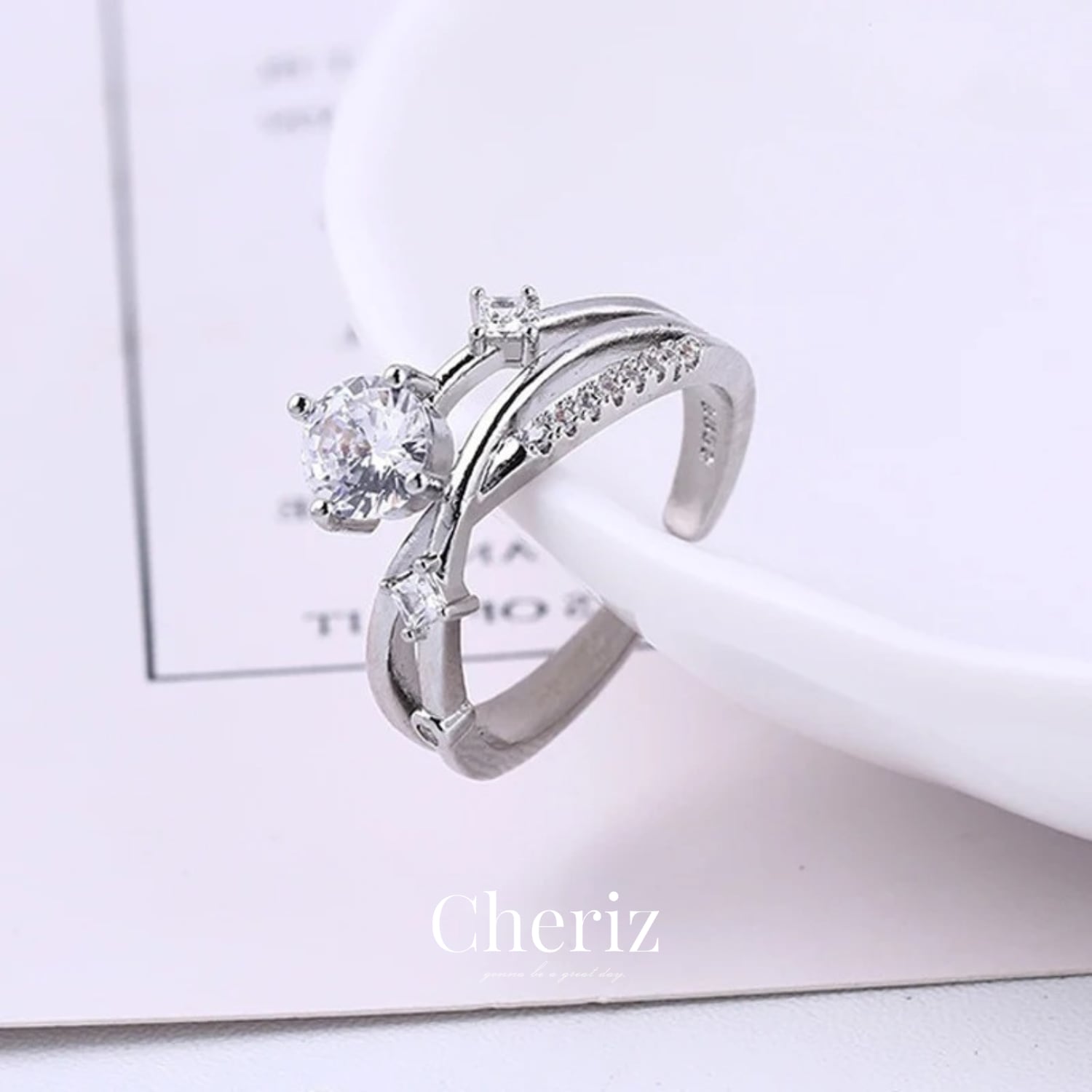 大小のジルコニアをセットした、エレガントなリング。