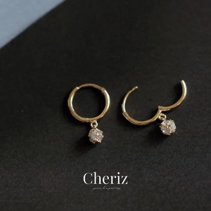 シンプルなデザインで、ジルコニアの高級感のあるフープピアス。