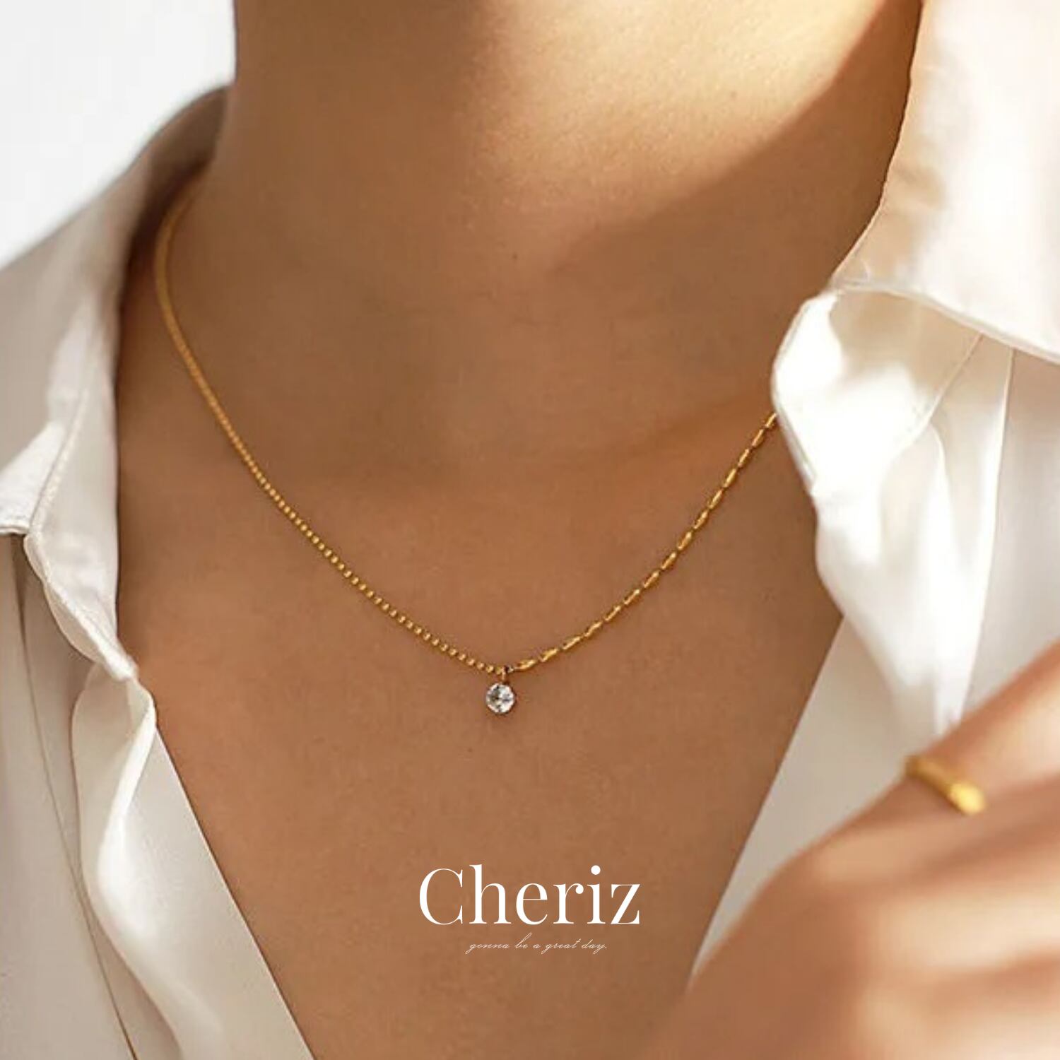 チェーンの切り替えが印象的なジルコニアネックレス。