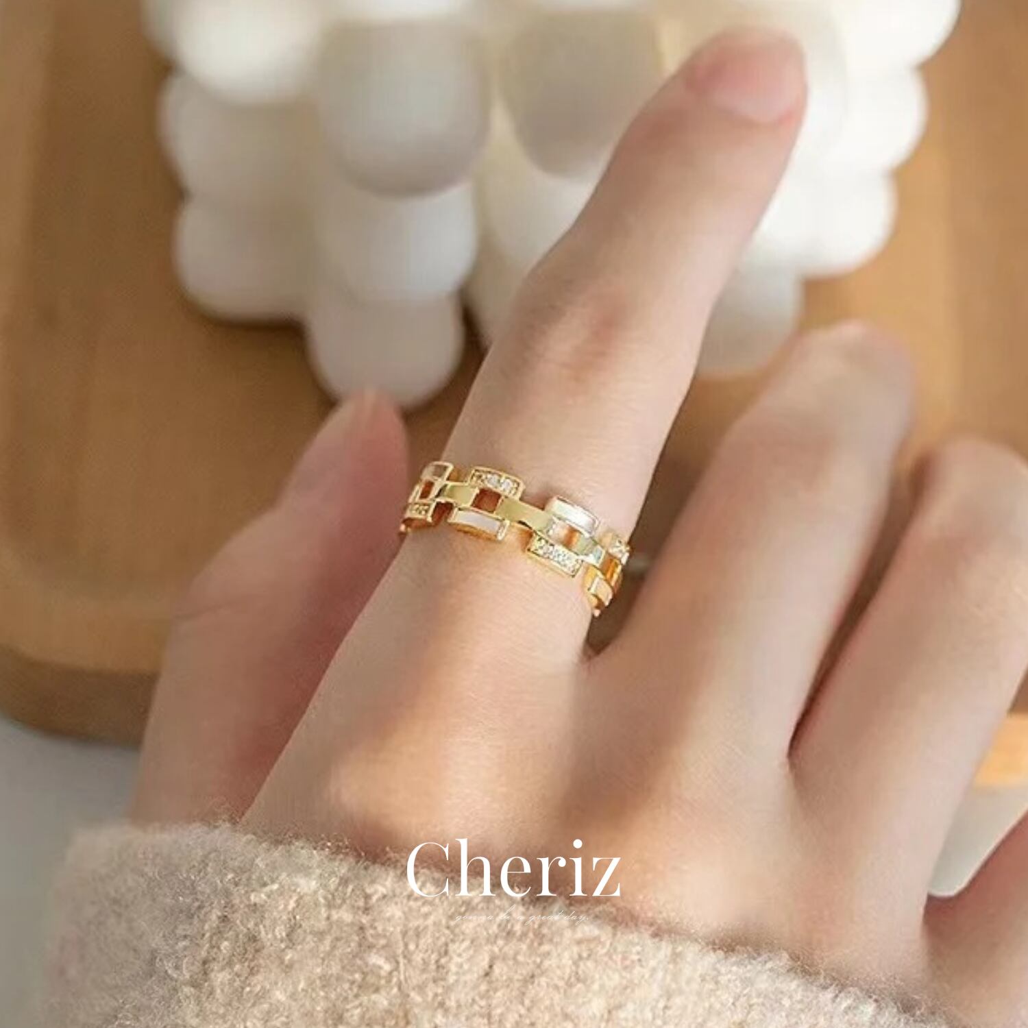 程よく存在感のあるリンクジルコニアリング。