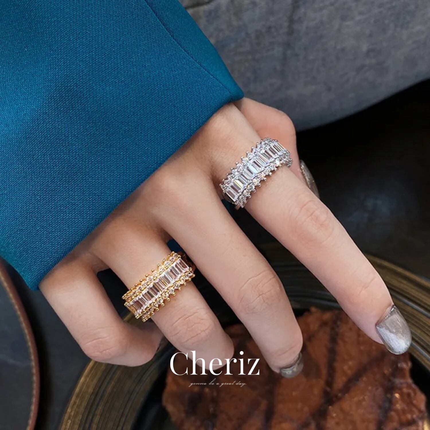 バゲットカットのジルコニアダイヤモンドが美しいリング。